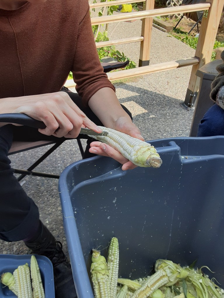 This corn is ancient Haudenosaunee white corn gifted to us from some kind community members from Six Nations. It is not like commercial corn you get at the grocery store. It is full of proteins, omega fatty acids, vitamins, and other nutrients, and is not empty carbohydrates. We picked this round a little early, so it is can be used in a similar way to commercial corn in this state and doesn’t need to be lyed before eating. In about a month, the corn will need to be lyed before it can be eaten, which is a process of boiling the corn with ashes to make it edible for humans.